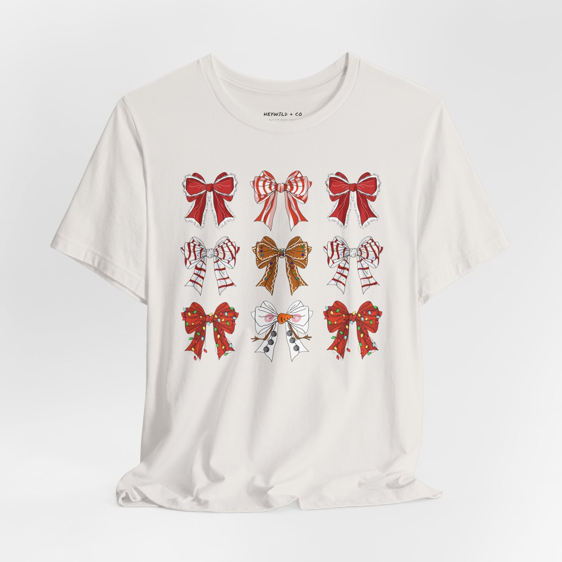 This Christmas Bow Shirt Coquettes Girl Tee exudes a festive and playful vibe, perfect for the holiday season