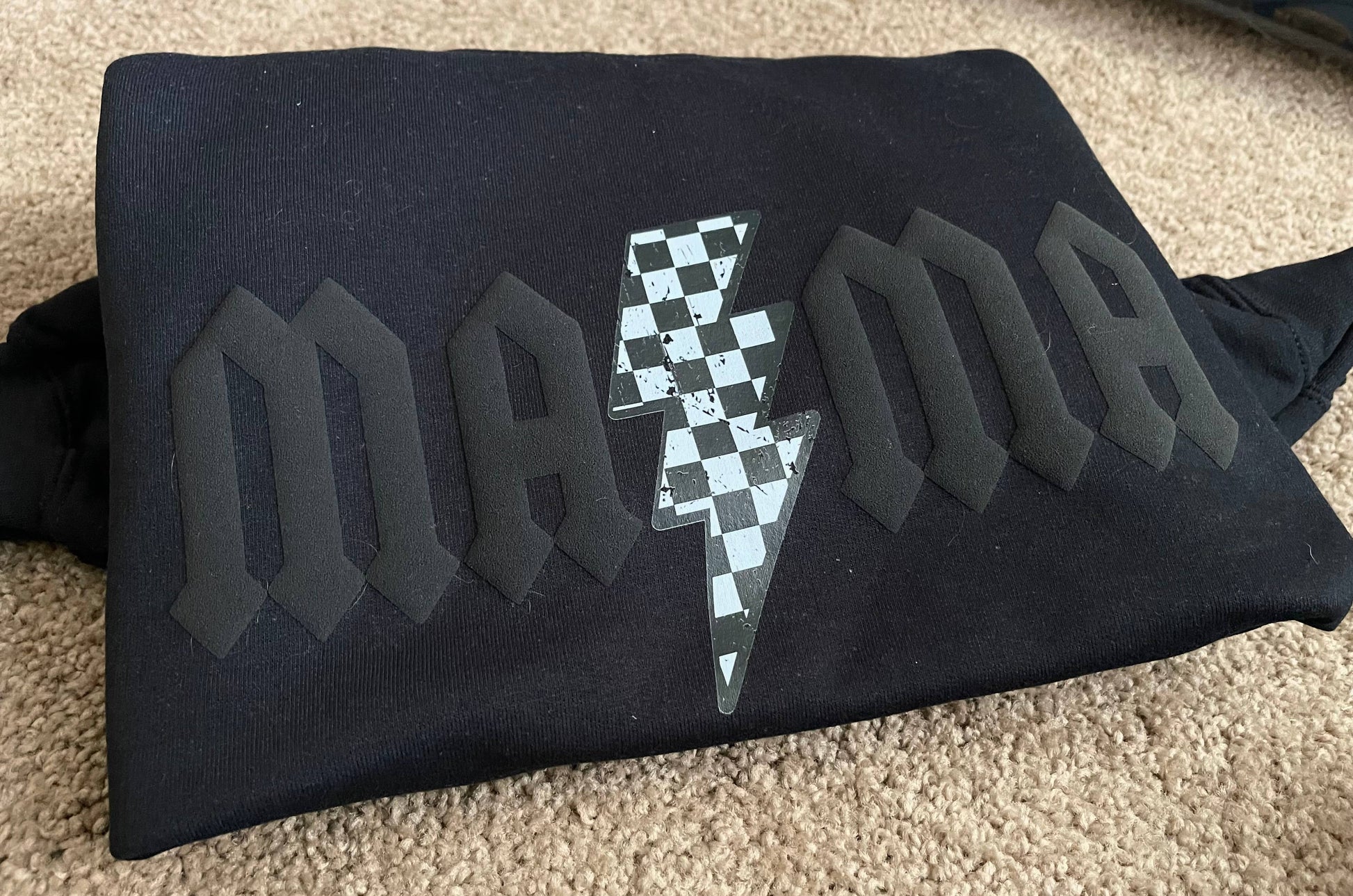 MAMA puff and checkered crewneck sweatshirt